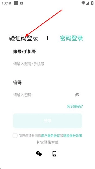 打开卫和健康软件,选择验证码登录方式,进入对应的登录界面。