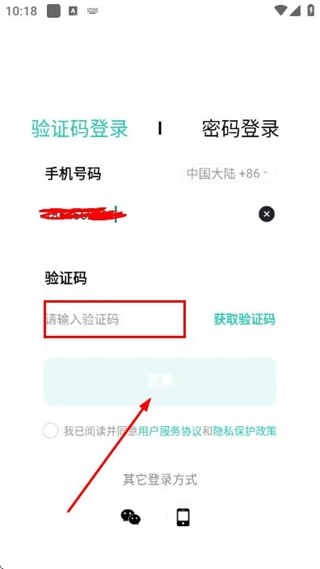 在验证码输入框中填写收到的验证码,点击登录按钮即可完成账号登录操作。