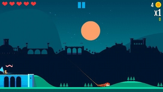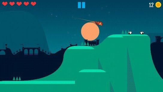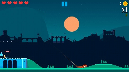 这个状态还有另一个特点,就是你能够同时调整两个方向,也能在按住一侧屏幕的情况下操作另一侧屏幕,就像上面图里展示的那样;大家能看到楼主是用两根手指按住屏幕的(屏幕上的两个白点)。这时候,要是我松开左边屏幕但不松开右边屏幕,角色就会保持慢镜头状态朝着你调整的方向飞行。而且只要我不松开右边屏幕,还可以反复进行这个操作。