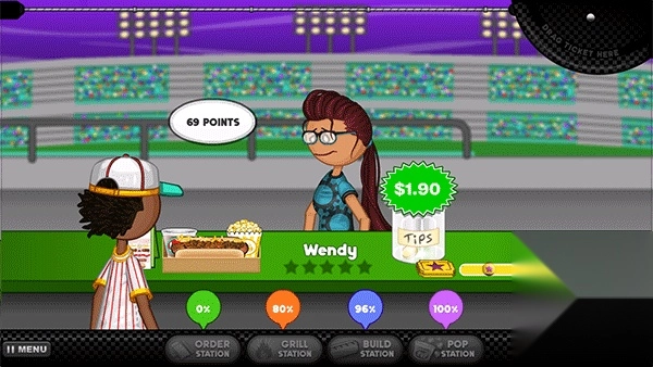 在游戏里,你所扮演的角色是老板,要负责经营与管理一家热狗店,得处理订单、制作热狗、收取款项,还要确保顾客的满意度。