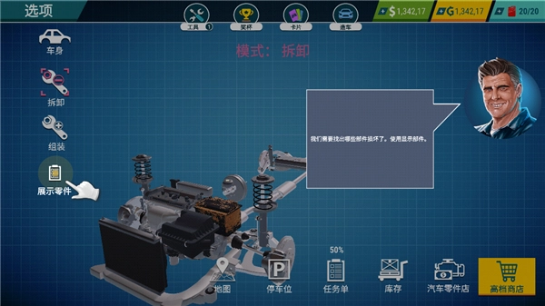 去除损坏部件后,我们需要购置新的零件,可点击汽车零件商店进行购买。
