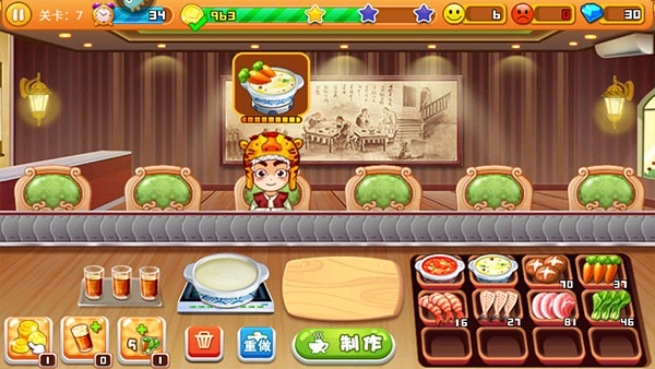 所有客户都吃到想吃的火锅后,即可完成闯关;