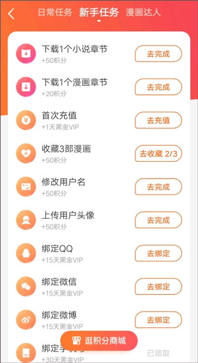 小伙伴们可以在“我”的页面进入积分商城,用积分兑换阅读券或铂金VIP来观看付费漫画。其中,阅读券能解锁99%的漫画,铂金VIP则可直接解锁90%的漫画。