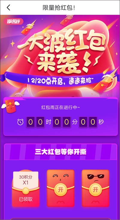 每周一中午12点或晚上20点,大家可以在首页参与抢红包活动,有机会领取积分、阅读券、铂金VIP等奖励。