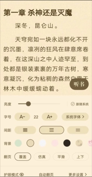 点击小说中间区域,就能自由设置不同的背景颜色以及各类内容,使用起来十分便捷。