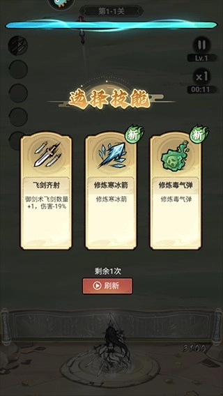玩家通过刷怪升级,来学习新技能