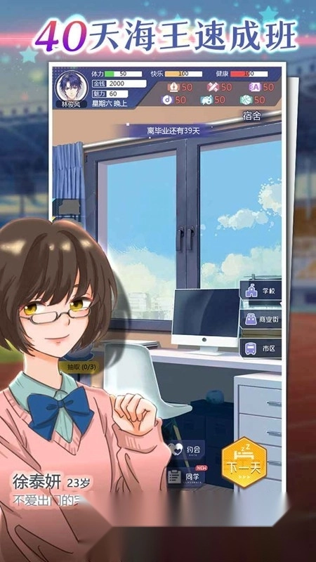 海王模拟器正式版,在这款模拟人生主题的游戏里,你会化身成一个善于和各种女性打交道的角色,遇见御姐、萝莉、教师等性格各异的人物,通过主动邀约约会、展开对话,慢慢开启多样的剧情故事;游戏用轻松诙谐的风格展现情感交流,带来与众不同的体验,感兴趣的话可以在本站尝试。