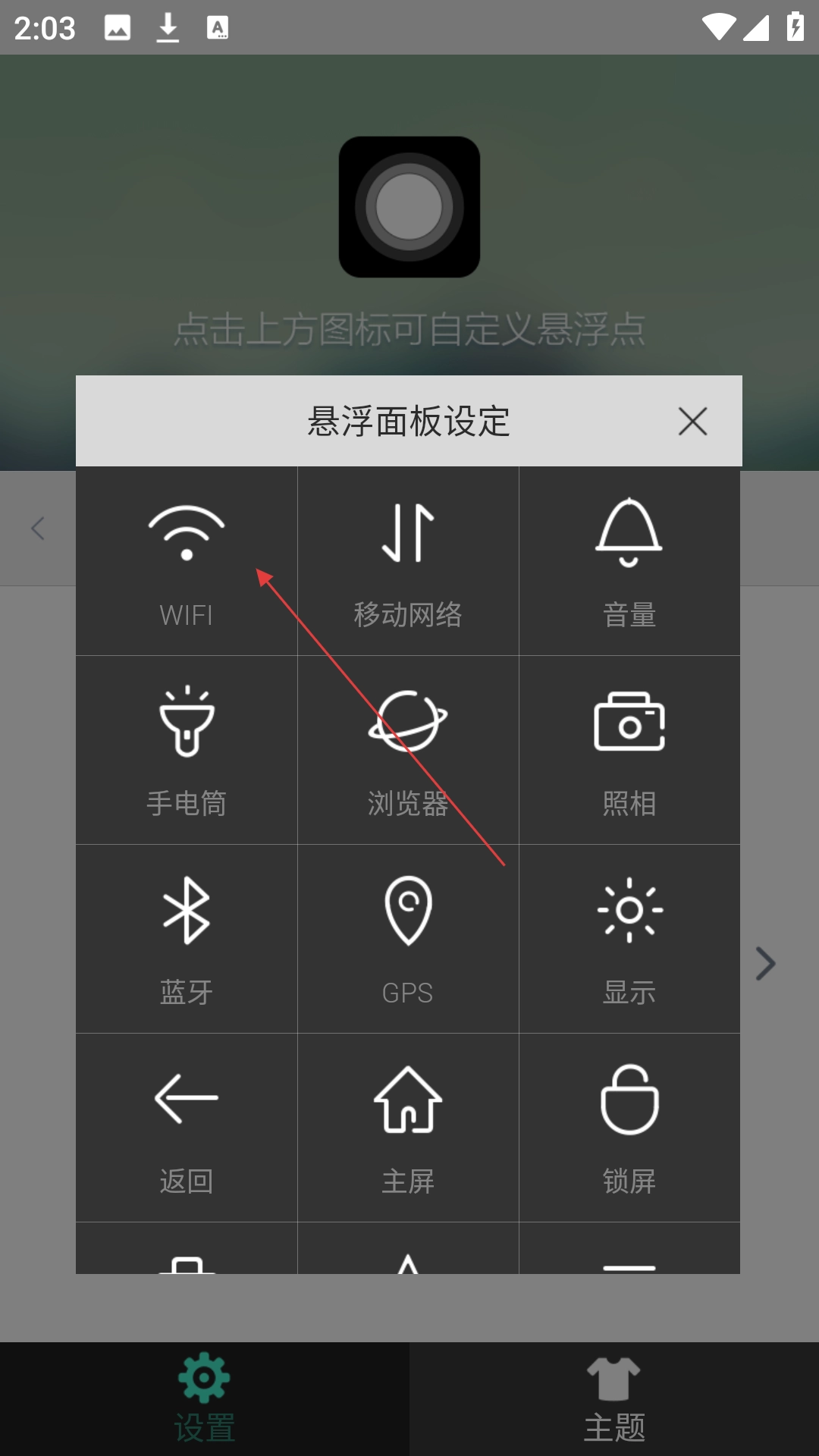 4、弹出悬浮面板,设定里设置【功能】快捷即可。
