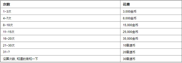 以下为每扩充一次偶像栏位时所需要花费的音速币以及金币