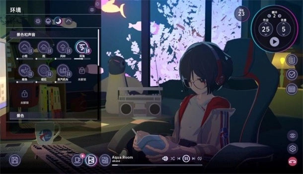 3.可以自由调配原创Lo-Fi乐曲、雨声、咖啡馆背景音等环境白噪音,以及随时间流转的窗景,定制专属的专注氛围。