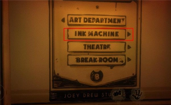 1、首先,我们需要进入油印机的房间(门上方标有INK MACHINE),在这里触发启动油印机的任务。