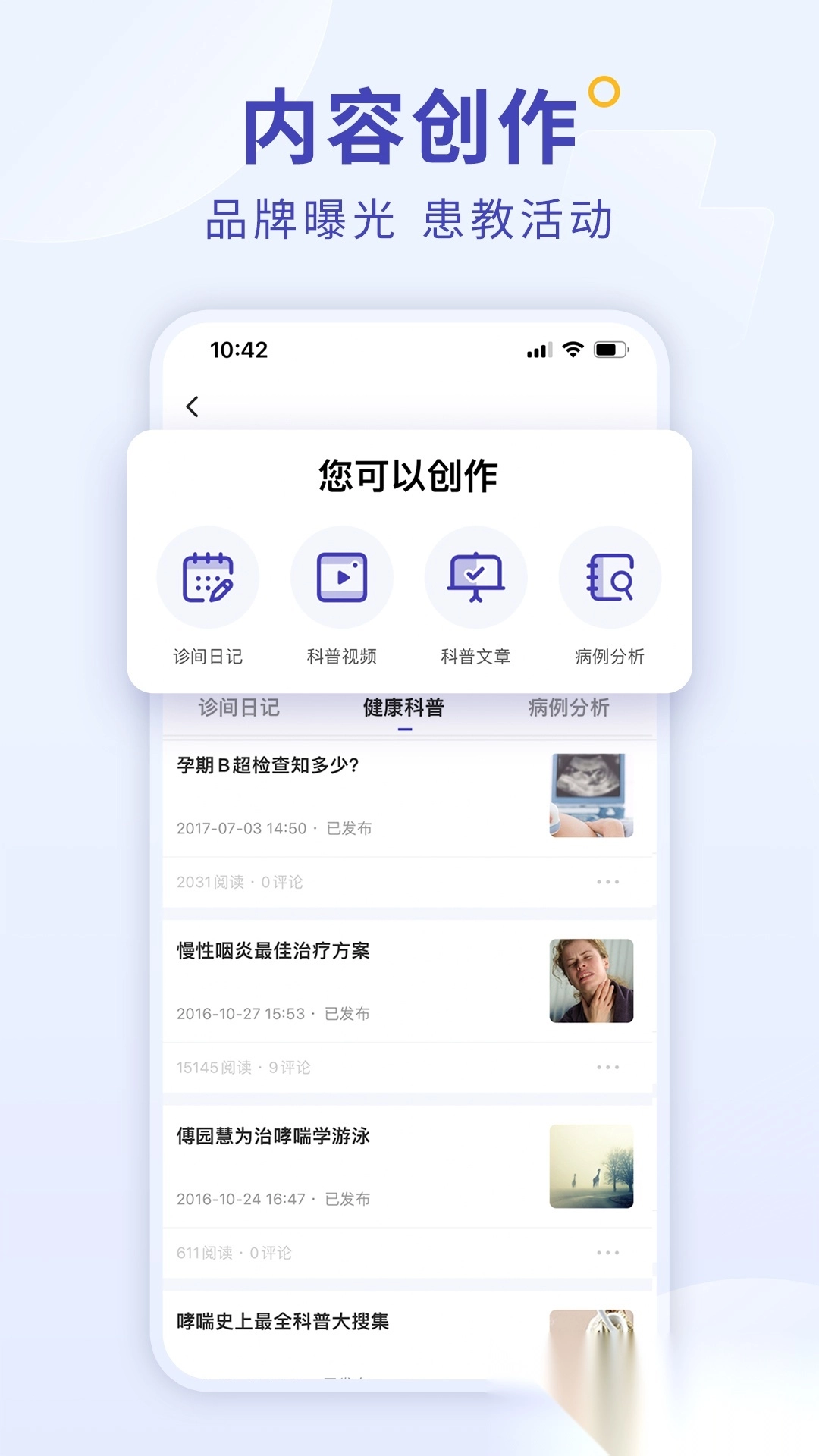 通过平台积累患者粉丝群体,提升个人专业形象;