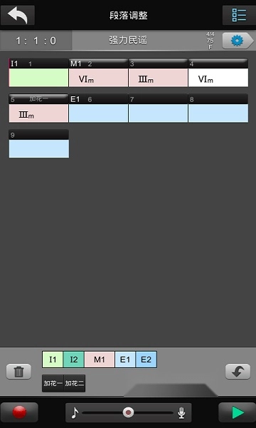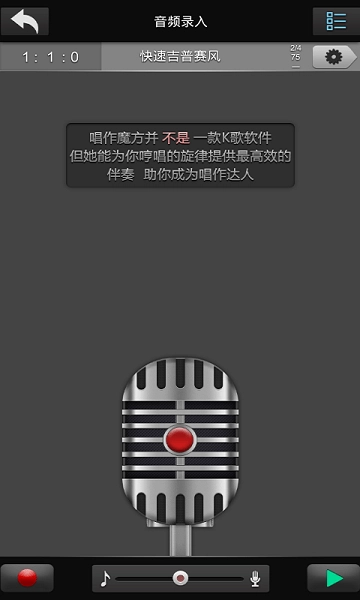 点击录音按钮录制人声或乐器,软件会自动分析并生成完整编曲。