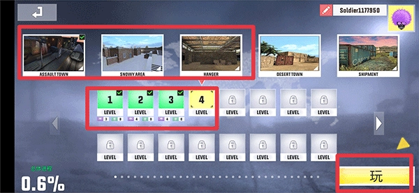接下来要选择需要解锁的关卡和地图,选好之后点击右下角的“玩”按钮。