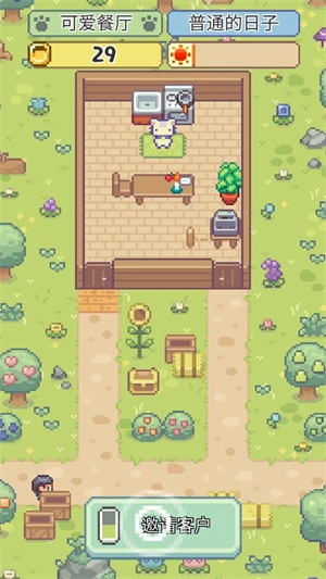 采用卡通或像素风格,色彩鲜明,场景温馨,营造出轻松愉快的游戏氛围。