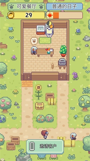 菜品制作完成后,点击“开店铺”按钮即可正式营业;若想招募客人,点击下方的“邀请客户”选项即可。