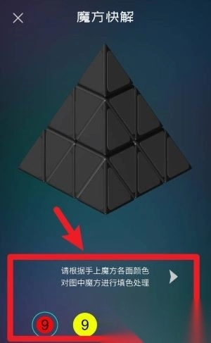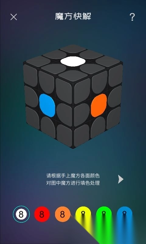 使用魔方快解功能时,按照实际魔方的颜色逐块进行填色操作,系统会自动完成识别并推送对应的还原公式。