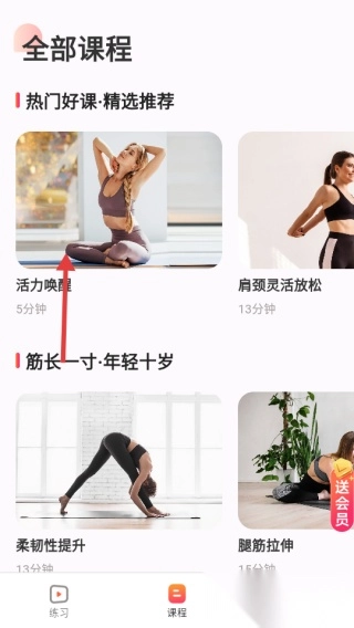 启动应用后点击底部课程标签进入训练库;