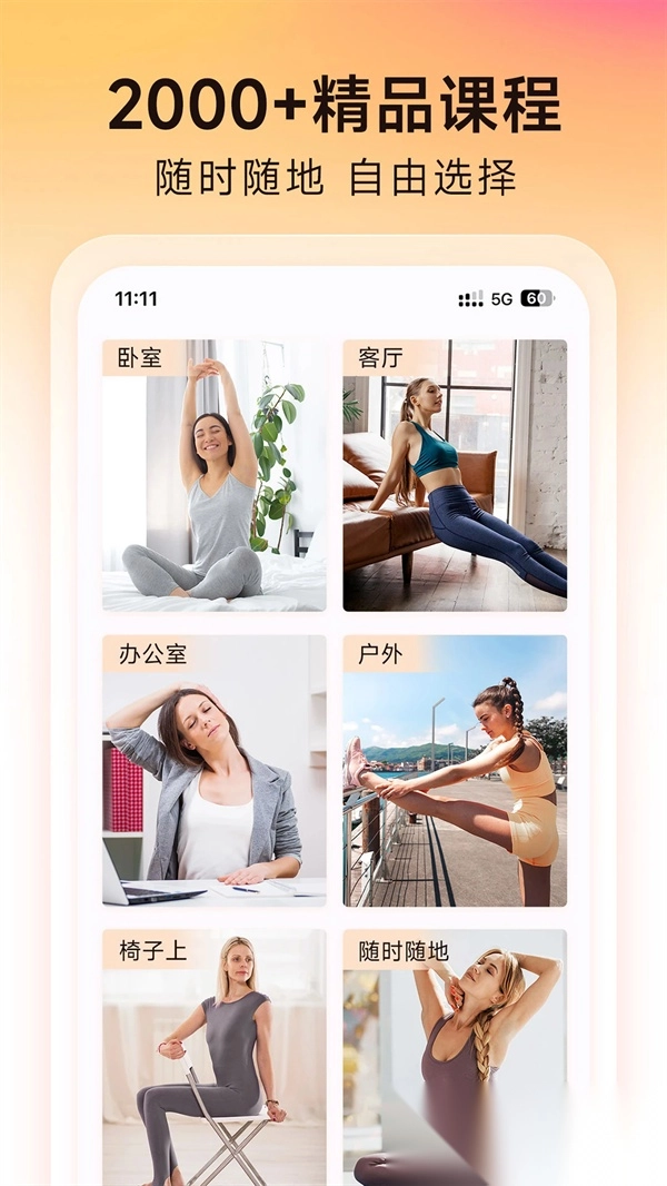 场景化课程库涵盖晨间激活、办公间隙、睡前舒缓等12类场景课程,所有动作均无需器械;专业教练通过视频示范搭配语音提示,助力居家练习时动作更标准。