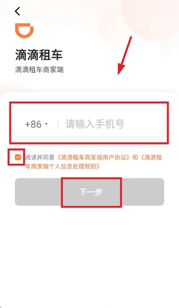 请输入手机号码,勾选“阅读并同意用户协议和个人信息处理规则”选项,然后点击“下一步”按钮。