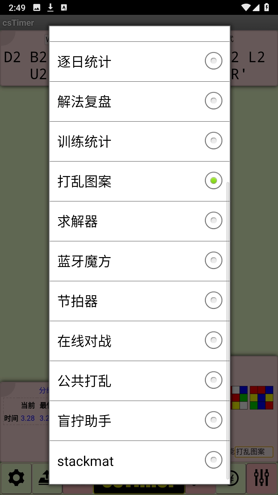 工具面板——在这里你可以选择特定的辅助功能,像打乱图案、打乱生成器、求解器,还有其他丰富的成绩统计信息等。