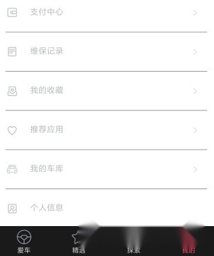 进入个人中心页面,可查看支付中心、维保记录、我的收藏以及推荐应用等内容。