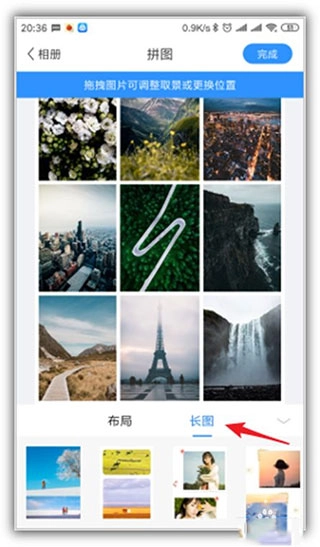 然后从手机中选择最多9张图片,点击右上角的拼图。