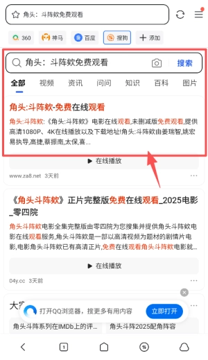 从搜索结果里筛选出带有视频或在线播放标识的内容,点进去后查找可以免费观看的播放区域。