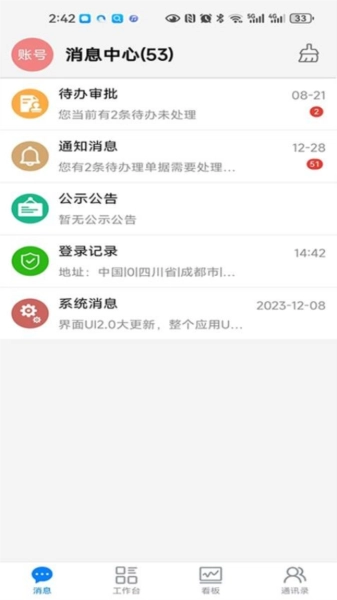 通过数字助手,用户可随时随地与同事协同办公,统一管理工作任务,并借助图表直观呈现数据。这不仅有效提升了工作效率与质量,还让工作生活变得更加便捷灵活,助力用户高效工作、便捷办公,是一款值得推荐的办公助手。工作台整合了所有办公应用,成为用户的数字化办公中枢,支持随时随地在线办公,其中包含安全检查、任务发布、贷款登记、安全整改、质量处罚等丰富功能,可供用户线上办公使用。全面的办公功能让用户尽享智能办公体验,能够及时在线处理各项工作事务,显著提高办公效率。此外,软件会及时推送各类工作消息,方便用户了解并处理;同时将各项业务数据通过图表分析实现可视化管理,让用户可随时掌握业务数据的详细情况。