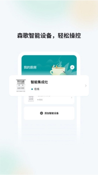 森歌智慧厨房是一款巧妙融合科技与烹饪艺术的智能厨房管理应用,引领家庭生活进入全新的智能化时代。通过它,您不仅能轻松驾驭各类家用厨房设备的操作,更能沉浸于烹饪的乐趣,尽享智慧品质的厨房生活。现在就加入我们,一同探索智能厨房的独特魅力吧!