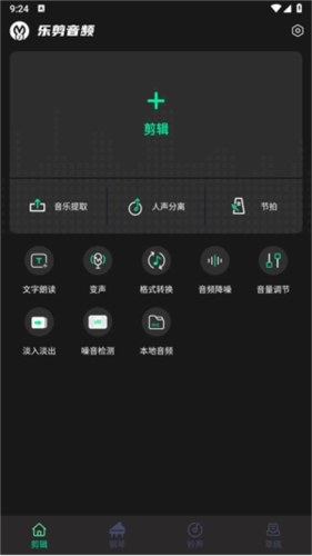 打开乐剪音频应用,进入剪辑专区后,不仅能直接对视频进行剪辑操作,还可以使用其他各类小工具。