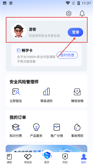 进入【我的】页面后,点击【登录】按钮会弹出登录界面;未登录状态下,您可以游客身份体验相关功能;完成登录后,则能使用【畅学卡】等服务。