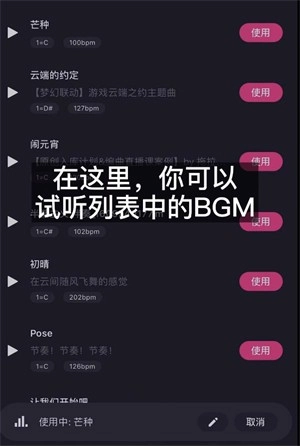 2、在此页面,你能够自由挑选心仪的BGM,接着点击“使用”即可完成更换。