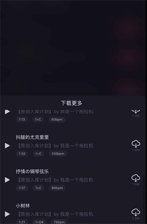 3、你还能点击“下载更多”,从云端的BGM里进行挑选。选好音乐后,点击下载即可使用。