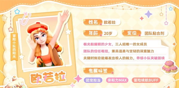 这位满脸笑容的E人女孩,由于老爸的一次乌龙事件,被误打误撞空降到了珍珠岛,竟意外成为了岛主。可别被她那甜妹的外表给迷惑了,她可是三人探险小队里的勇气核心,还立下“再探索100个岛!”的誓言呢。
