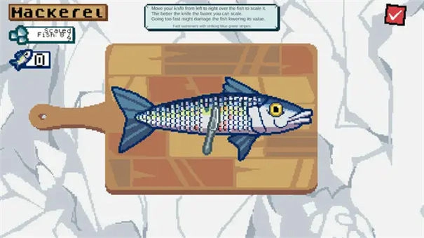 《海上餐厅》是一款独具像素风格的经营模拟游戏。在浩瀚无垠的海洋之上,你将开启一家别具特色的餐厅,借助游轮这一独特载体来运营。诚挚欢迎每一位顾客光临你的海上餐厅,品尝鲜美的生鱼片与海鲜刺身。 海上餐厅手机版,除了常规的经营事务,其中各类鱼类食材,都得靠玩家亲自打捞与垂钓获取。唯有成功钓到鱼,方能为顾客精心制作美食,努力将这座海上餐厅发展壮大。 在游戏里,你将扮演海上餐厅的老板,每日迎接来自五湖四海的客人,依照他们的需求烹饪出一道道美味佳肴。而在游戏的钓鱼环节,玩家钓到鱼后,还需回到船舱,进行细致的刮除鱼鳞操作。