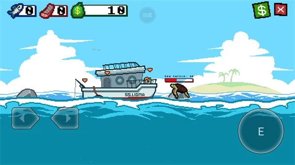 5、刮完鱼鳞后,可直接把处理好的鱼丢给海上的乌龟顾客吃,它吃完会吐出金币。