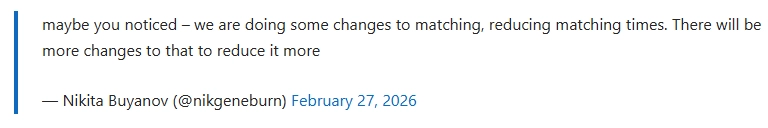 好评如潮的知名游戏《逃离塔科夫》有一个饱受玩家批评的问题,那就是玩家组队的匹配时间过长。不过昨天很多玩家惊喜地发现匹配速度变快了,开发商Battlestate Games工作室负责人Nikita Buyanov回应表示,确实对游戏系统进行了优化,从此将摆脱匹配缓慢的标签。