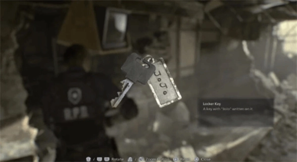 钥匙挂件写有“JoJo”。该名称源自初代《生化危机2》的储物柜设定,并且曾被确认是对