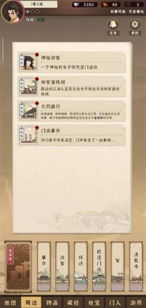 15、月娘相关任务:完成地图事件“向阳村的邪功”,推进真武派娶亲、灵猫村等主线剧情。之后触发地图事件《采药女子》,若门派内有懂医术的门人,即可协助治疗她的好姐妹。