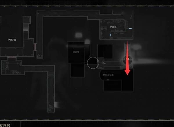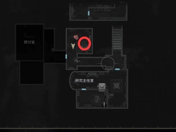 从等候室东面的楼梯上楼,拿到墙上的【东侧地图】,然后进入研究主任室有【撬锁工具】和存档点。
