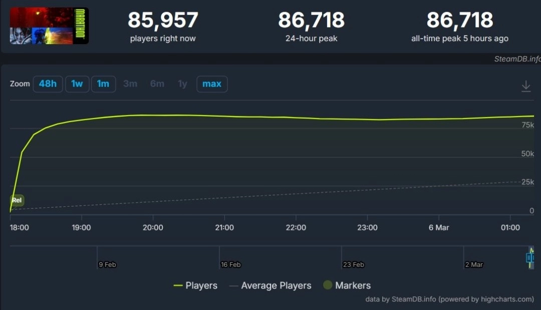 《命运》系列开发商Bungie打造的大型多人在线射击游戏《失落星船:马拉松》,与传奇卡牌类肉鸽游戏《杀戮尖塔》的续作在同一天推出。尽管两款游戏的类型和受众群体截然不同,但玩家们纷纷涌向SteamDB,关注它们的同时在线玩家数量,都想见证Bungie这款服务型射击游戏与超人气独立游戏续作之间的比拼。