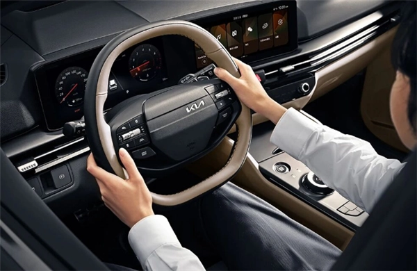 进入车内,内饰同样启用了新设计,方向盘换装两幅式,双联屏变得更细长,并调整了空调控制区的样式,加入抬头显示系统。