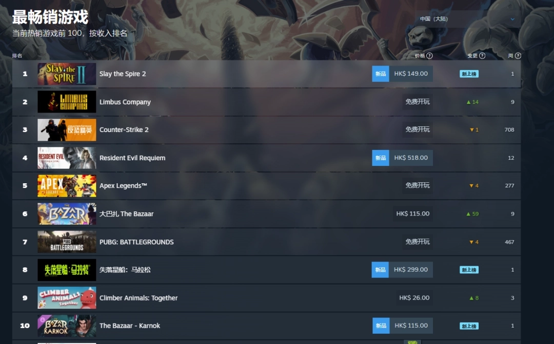 力压《生化9》!《杀戮尖塔2》斩获Steam国区及全球热销榜冠军