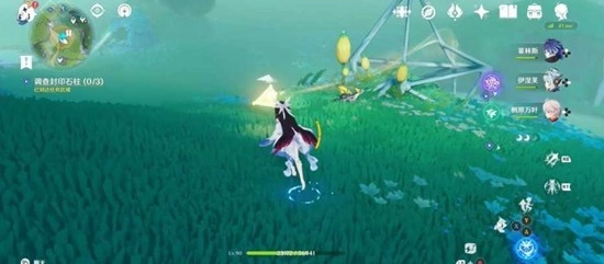 徒步前往下一个任务区域,途中遇到深渊隙线时利用附近的锋萼花将其清除,再与棱镜触碰并跟随移动至石柱附近。击败出现的所有敌人后出现精致宝箱。
