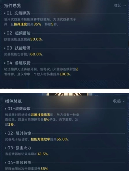 这套插件榴弹的冷却时间大约是5秒一个,天赋选择行境幻化,开启技能后能提升100%的回能效率,这样差不多就能连续打出4发榴弹,对付boss时直接右键用榴弹轰击就可以了。