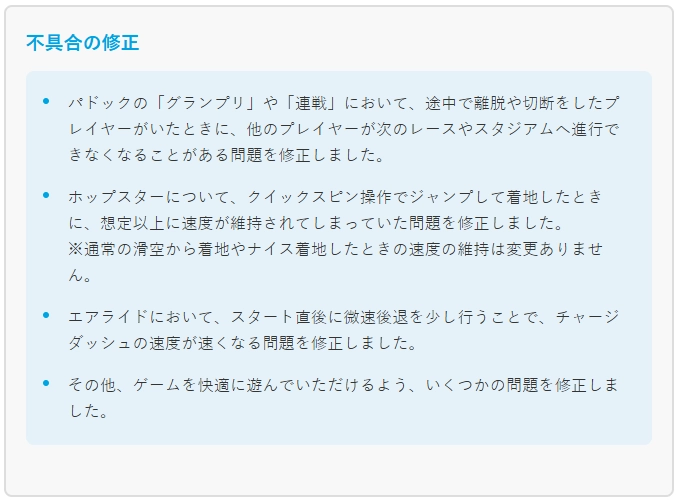 修复环形赛场的最终大奖以及连战等模式中,如果出现半路退出的玩家导致其他玩家无法游玩下面路线的额问题。