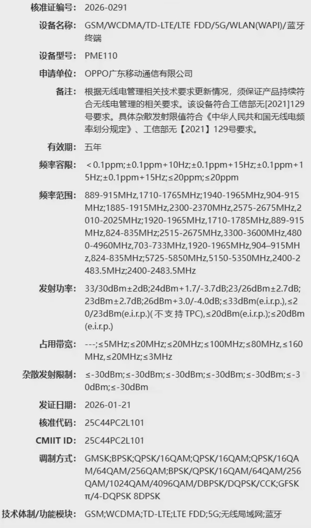 认证信息显示,Find X9s Pro 支持 5G 的 N79 频段。N79 频段是中国移动等运营商重点部署的 5G 频段,具有覆盖广、穿透力强的特点,尤其适用于密集城区、室内等场景。支持该频段意味着用户可在更多区域享受稳定高速的 5G 网络,避免因频段不兼容导致的信号衰减问题。这一特性对于经常出差或身处复杂网络环境的用户尤为重要。