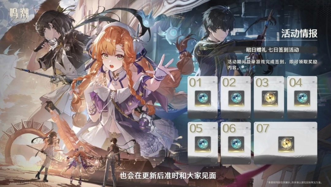 在3.2版本中,首先有300星声的兑换码奖励;版本更新修复补偿奖励为600星声;版本开启后,可通过商店兑换浮金波纹×7、铸潮波纹×7、唤声涡纹×7的奖励;3.2上半期间,7日签到能获得浮金波纹×5、唤声涡纹×5;版本内每日任务可累计获得2520星声;参与先约电台还能得到唤声涡纹×5的奖励。