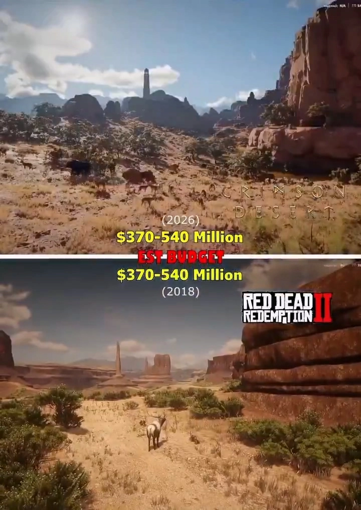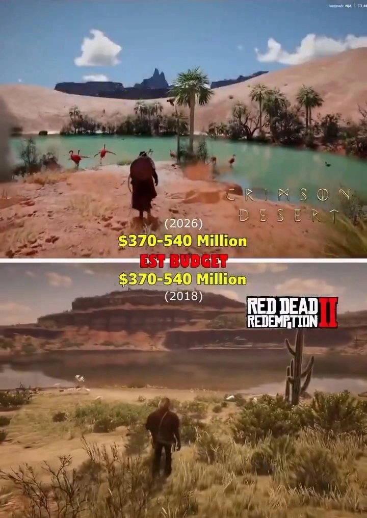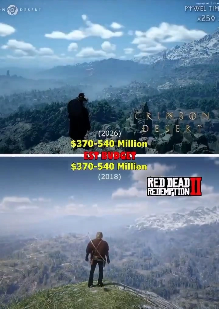 在第二个视频里,他对《红色沙漠》的开放世界展开了对比,发现其中部分场景的设计与《荒野大镖客2》极为相似。